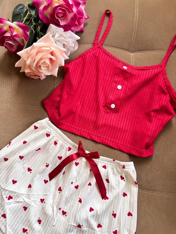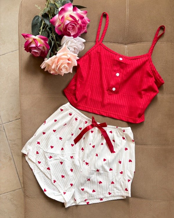 ♥ Pijama con musculosa mas corta con botones, viene 3 piezas: Short y pantalón.