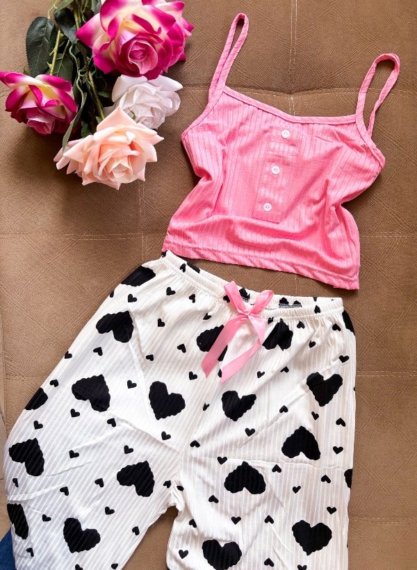 Pijama con musculosa mas corta con botones, viene 3 piezas: Short y pantalón.