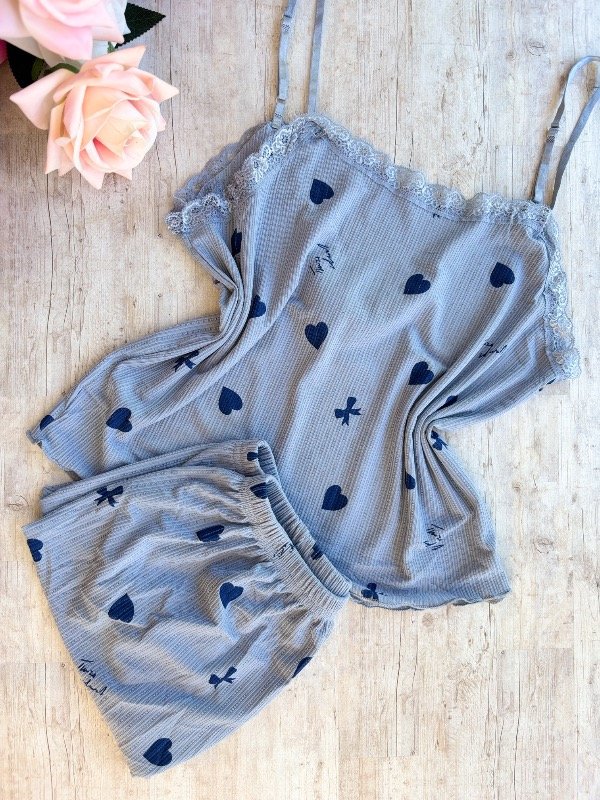 Pijama con musculosa y short. Detalle en espalda en V y moño