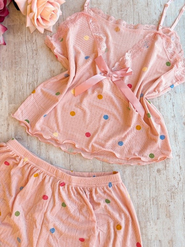 Pijama con musculosa y short. Detalle en espalda en V y moño