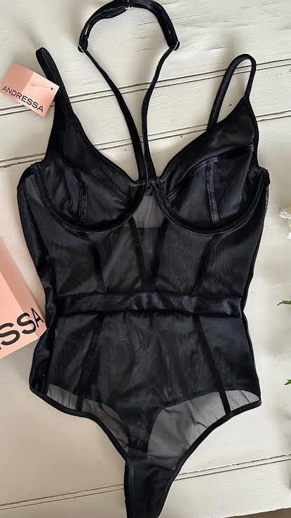 FINISIMO BODY CON ARO, DE TUL Y TERCIOPELO. DOBLE TUL EN EL BUSTO. SE ABROCHA CON SNAP EN ENTREPIERNA.