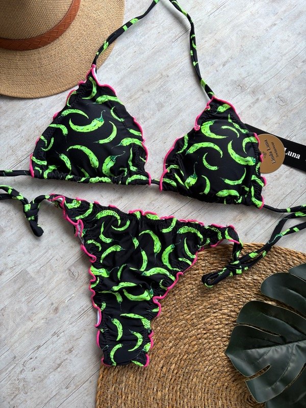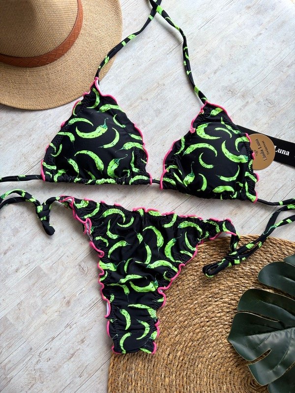 Bikini importada, con voladitos. Para atar el corpi y la less
