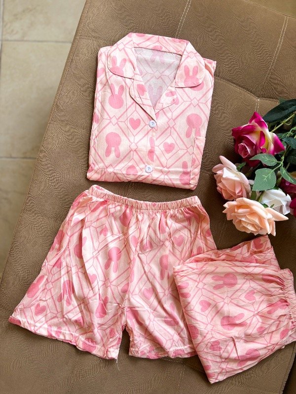 Pijama camisero con botones, viene 3 piezas: Short y pantalón.