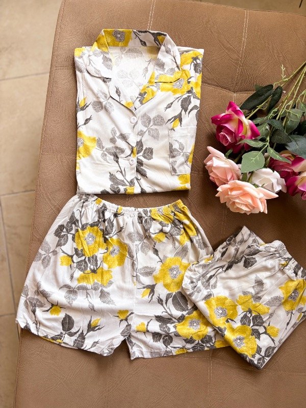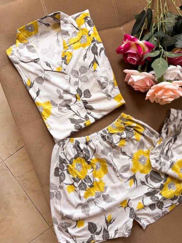 ♥ Pijama camisero con botones, viene 3 piezas: Short y pantalón.