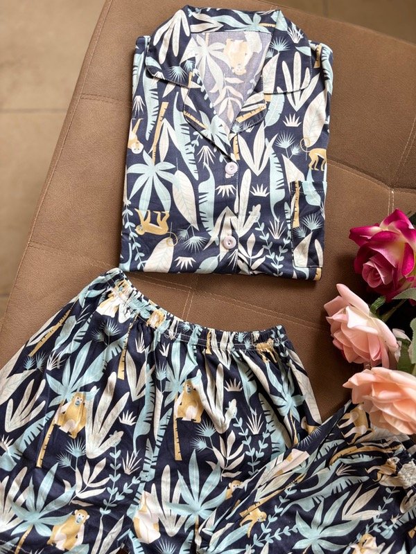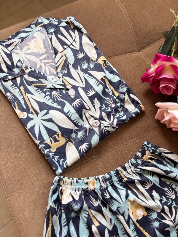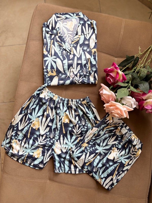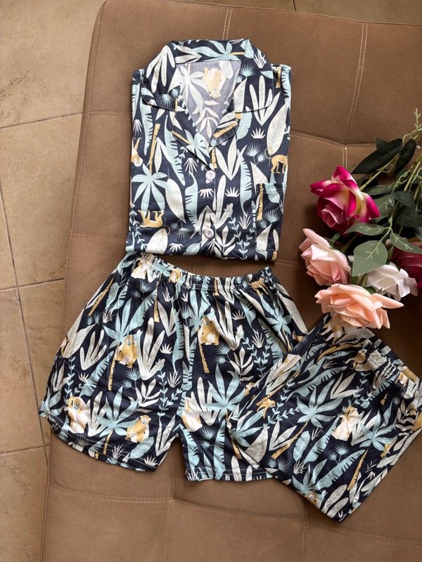 Pijama camisero con botones, viene 3 piezas: Short y pantalón.