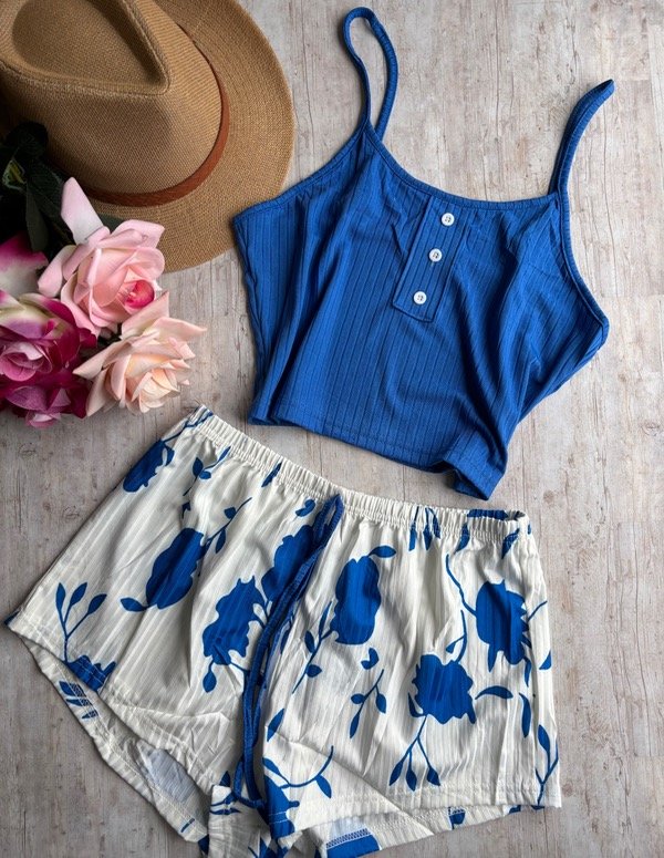 ♥ Pijama de morley . La musculosa es bretel fino (regulable) y short.
