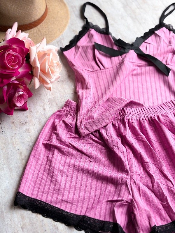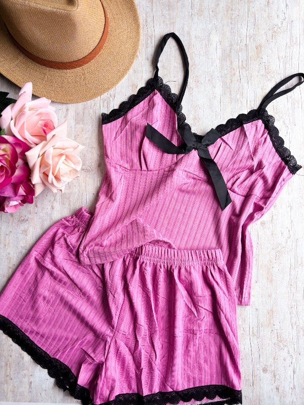 ♥ Pijama de morley . La musculosa es bretel fino, con detalle en puntilla y short.