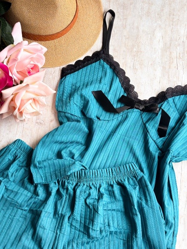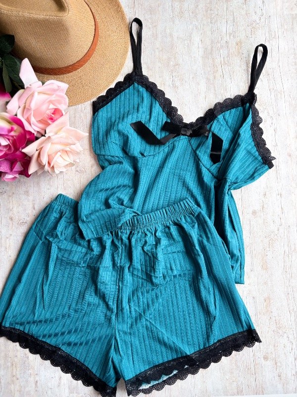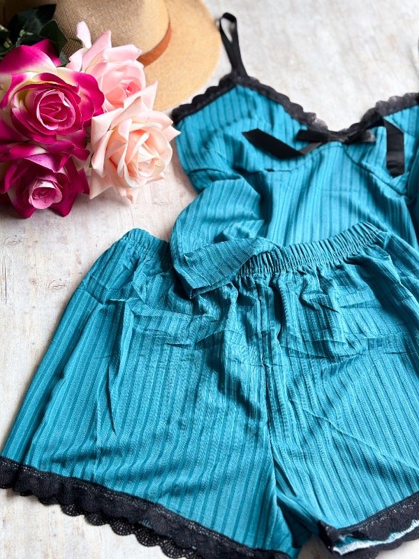 ♥ Pijama de morley . La musculosa es bretel fino, con detalle en puntilla y short.