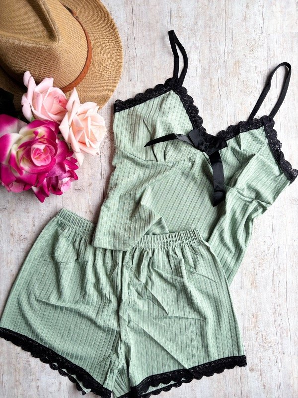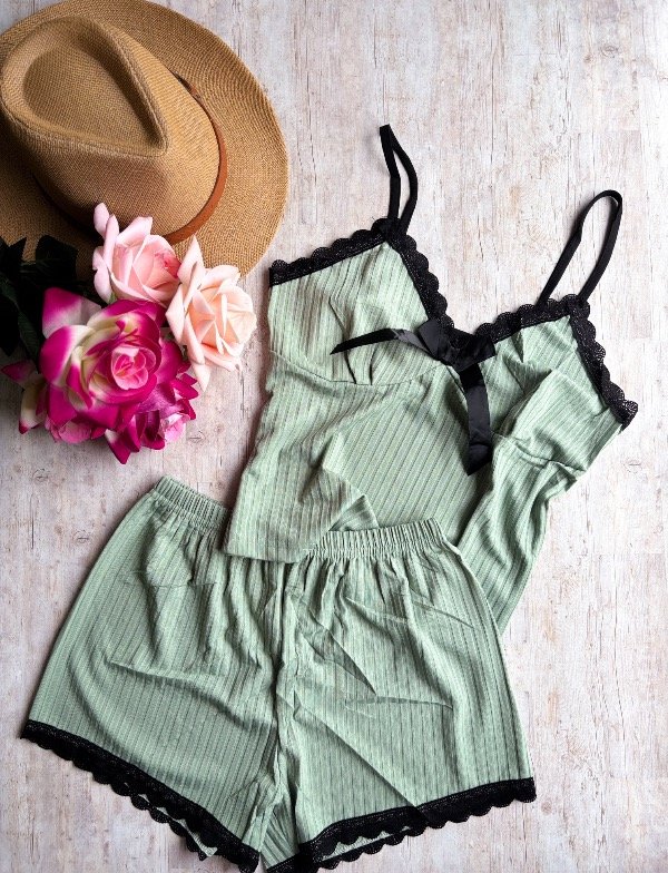 ♥ Pijama de morley . La musculosa es bretel fino, con detalle en puntilla y short.