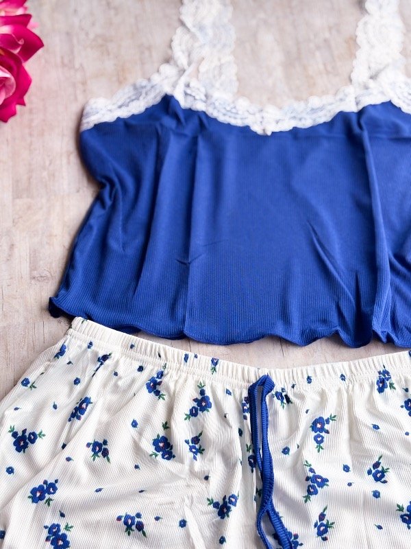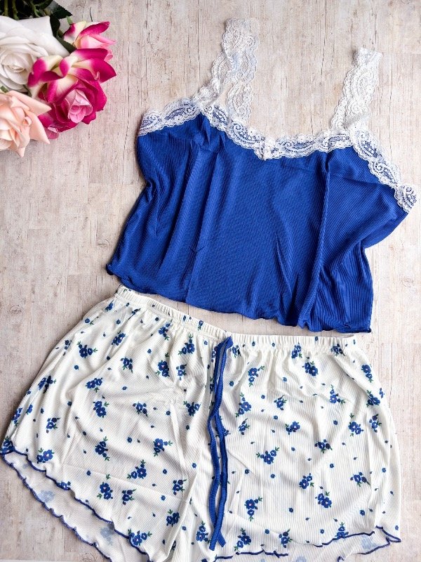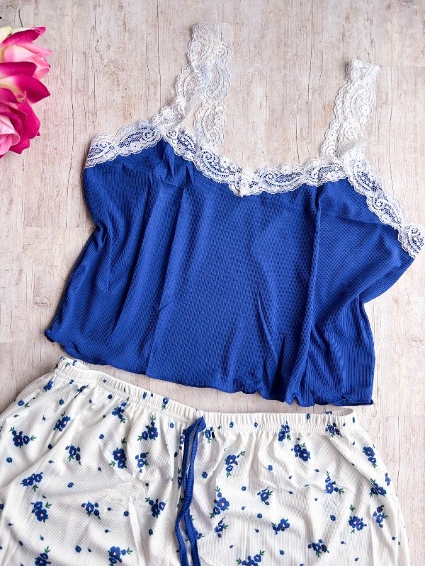 ♥ Pijama de morley y puntilla. La musculosa es con bretel en puntilla (no regulable), con short de voladitos