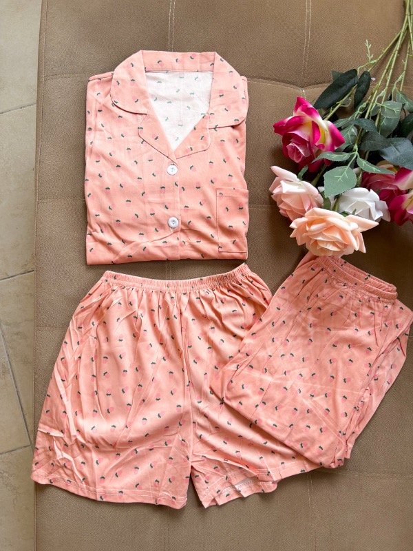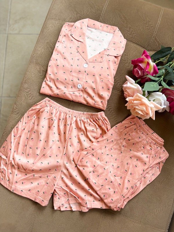 Pijama camisero con botones, viene 3 piezas: Short y pantalón.