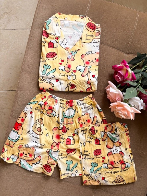 Pijama camisero con botones, viene 3 piezas: Short y pantalón.